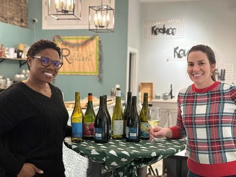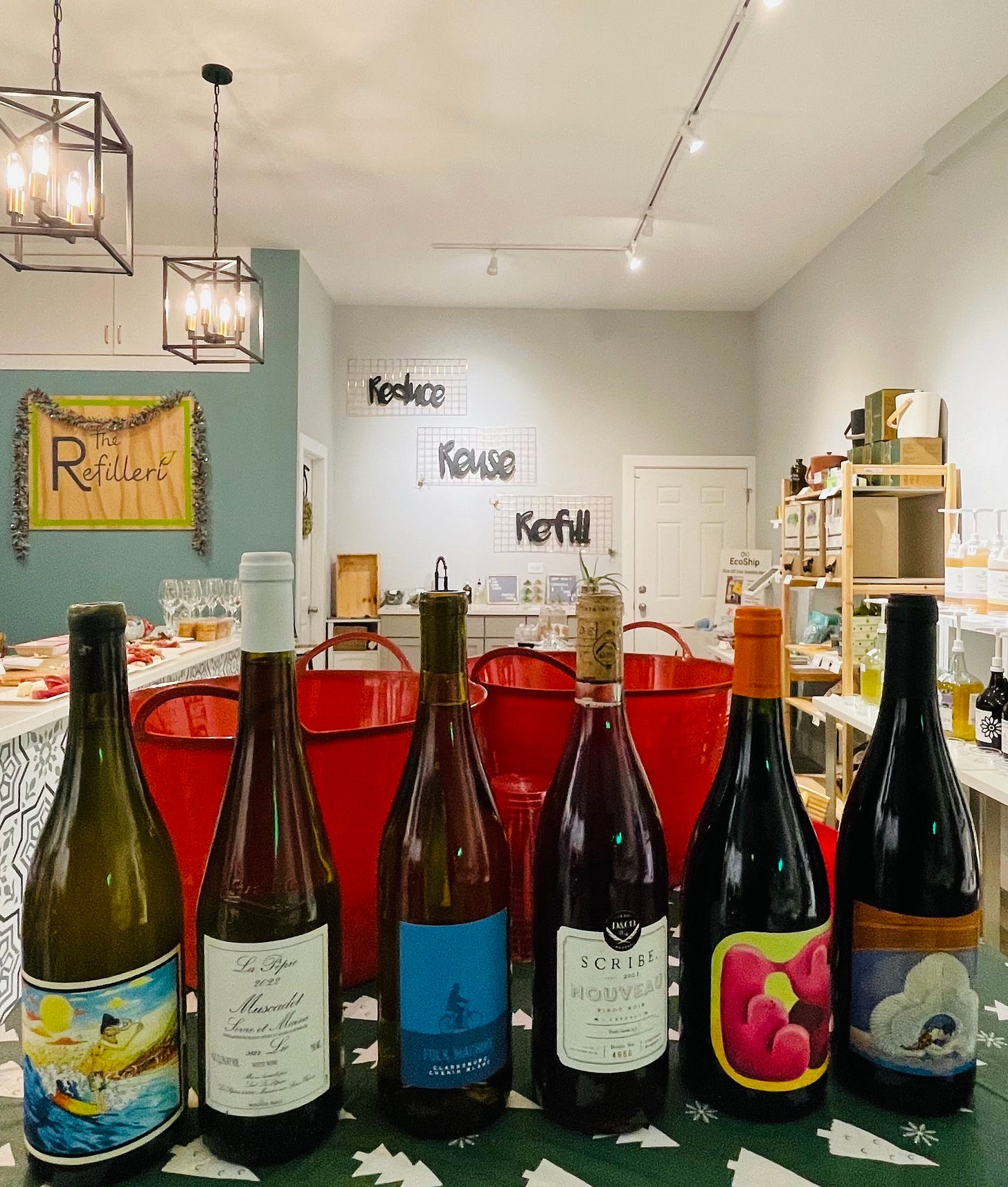 On Tuesday, December 5, I had the pleasure of hosting an eco-friendly wine tasting a The Refilleri, a zero-waste store where you can pull up and refill on everything you need from soaps and shampoo to purchasing sustainable towels, tote bags, and things for your pets. Many thanks to The Refilleri’s owner Kelli (pictured above) and to everyone who came out to sip. Also, a major shout-out to Erin and Ivan at All Together Now who provided INCREDIBLE insight on my wine selection.