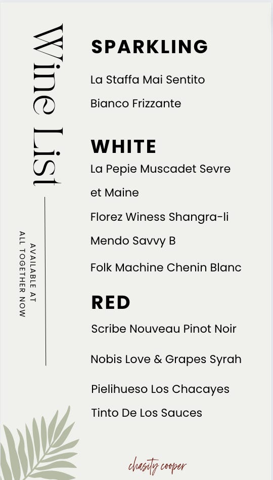 Perhaps over the holiday break, I will do a cute IG video on natural/organic/biodynamic wines, but for right now, I’m just going to share the wine list from Tuesday’s event because it was pretty darn awesome.